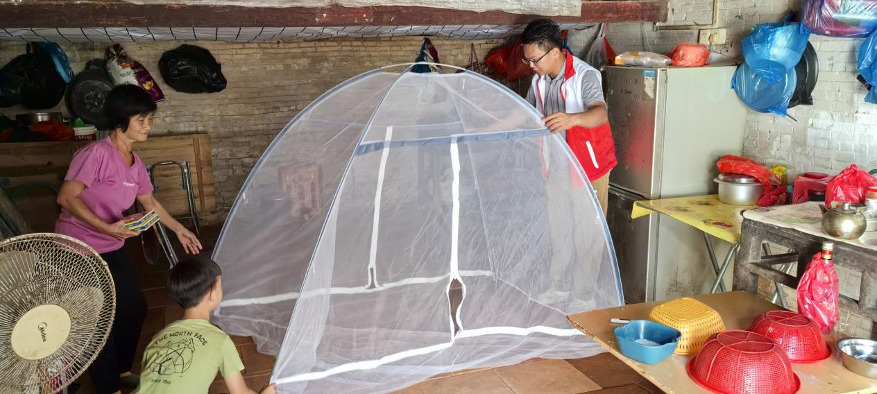 村中特困戶、孤寡老人等防護(hù)薄弱群體,更是選調(diào)生們牽掛的對(duì)象。他們帶著物資主動(dòng)上門,俯身動(dòng)手安裝蚊帳,清倒積水,耐心講解防蚊要點(diǎn)。看著新安裝好的蚊帳,一位阿婆連聲感嘆:“這些后生仔女真系有心,講得明白,做得實(shí)在!”